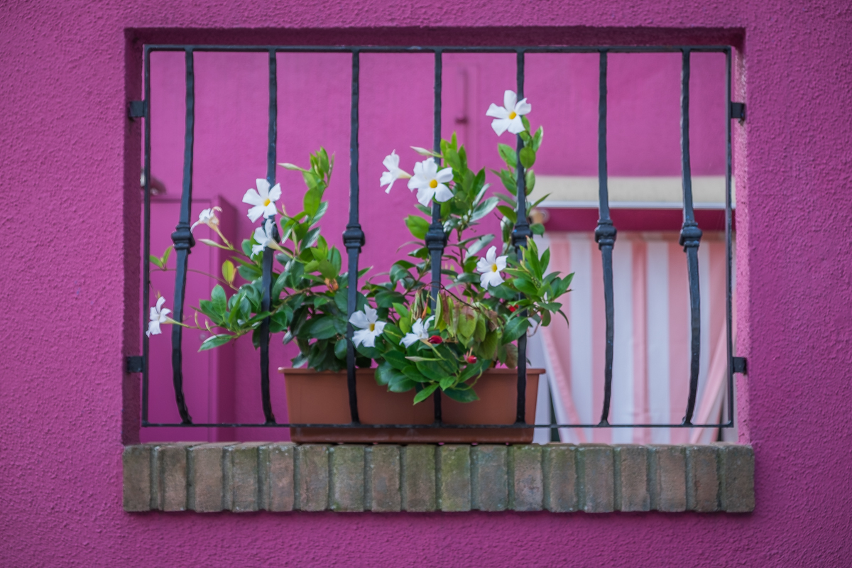 Facade rose et pot de fleurs